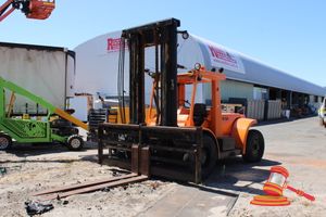 SERIAL# 0801750009, PNEUMATIC TYRES, MAST HAS MAX HEIGHT LIFT 6000mm & 2500mm TYNES (RUST EVIDENT) RUST EVIDENT ALL OVER CAB, WHEEL ARCHES DAMAGED, INSIDE SEAT SEVERLEY DAMAGED, MAST & TYNES DISCONNECTED/NOT ATTACHED TO FORK.(#KEY 122#)