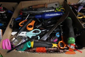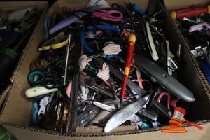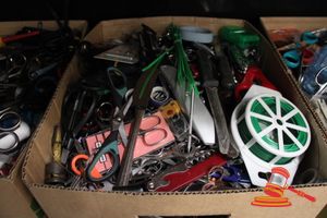 - BOXES OF ASSORTED SURRENDERED ITEMS & TAPE