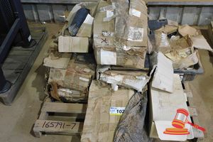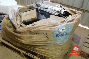 PALLET - MONITORS, MONITOR SWING ARMS, FOLDERS, PLASTIC DOCUMENT TRAY OTHER OFFICE ITEMS