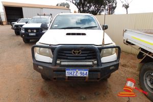 2011 Toyota Hilux Tray Top, White, 4 x 4, Manual, Diesel Reg #: 1HZZ964 (Expiry -21/05/2026) ODO: 411910KM Showing on Clock Eng #: 1KD5423064, 3.0L VIN: MR0FZ22G801054373 Features: Bullbar,Light Bar, Tow Hitch, Spare Wheel, UHF, ROPS (DR6374) Condition: RHF Panel Damage, Rust and Pitting to Most Panels, Rust to Bullbar and Tray, Small Dents to LHS Panels, Panel: FAIR, Paint: FAIR, Glass: FAIR, Tyres: FAIR Dash: FAIR, Upholstery: FAIR, Floor: FAIR Overall Condition: FAIR
