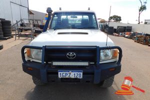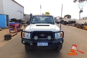 2008 Toyota Landcruiser Single Cab T Top, White, 4 x 4, Manual, Diesel Reg #: 1GPZ120 (Expiry 24/11/2026) ODO: 336,907KM Showing on Clock Eng #:1VD0030002 VIN:JTELV71J600006900 Features: Bullbar, Scrub Bar, Side Steps, Service Lights, Led Light Bar, Snorkel, Towbar, No Ball, R.O.P.S Tray (Asset #LV085), (DR# ) Condition: General Wear & Tear, Body Tray Undercarriage Rust Scrapes Pitting, RHR Flat Tyre (No Spare), Panel: FAIR, Paint: FAIR, Glass: FAIR, Tyres: FAIR, Dash: FAIR, Upholstery: FAIR, Floor: FAIR, Overall Condition: FAIR