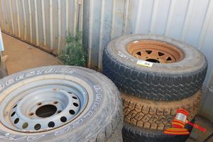 8.25 R15 TYRES MOUNTED ON 6 STUD RIMS 4 x SOLIDS & 2 x TUBED