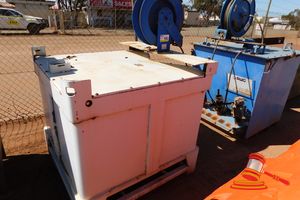 STEEL GREASE POD WITH PUMP AND REEL APPROX 1200mm x 1200mm WITH FORK TYNE POCKETS