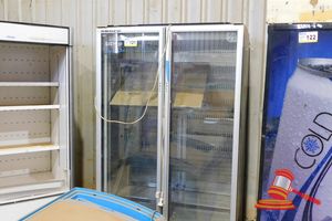 2 DOOR SKOPE UPRIGHT REFRIGERATOR MODEL# B900-2-C: B90BE, NOTE: SOME DAMAGE TO FRONT, CONTROLLER NOT MOUNTED, GETS COLD BUT DOES NOT CYCLE